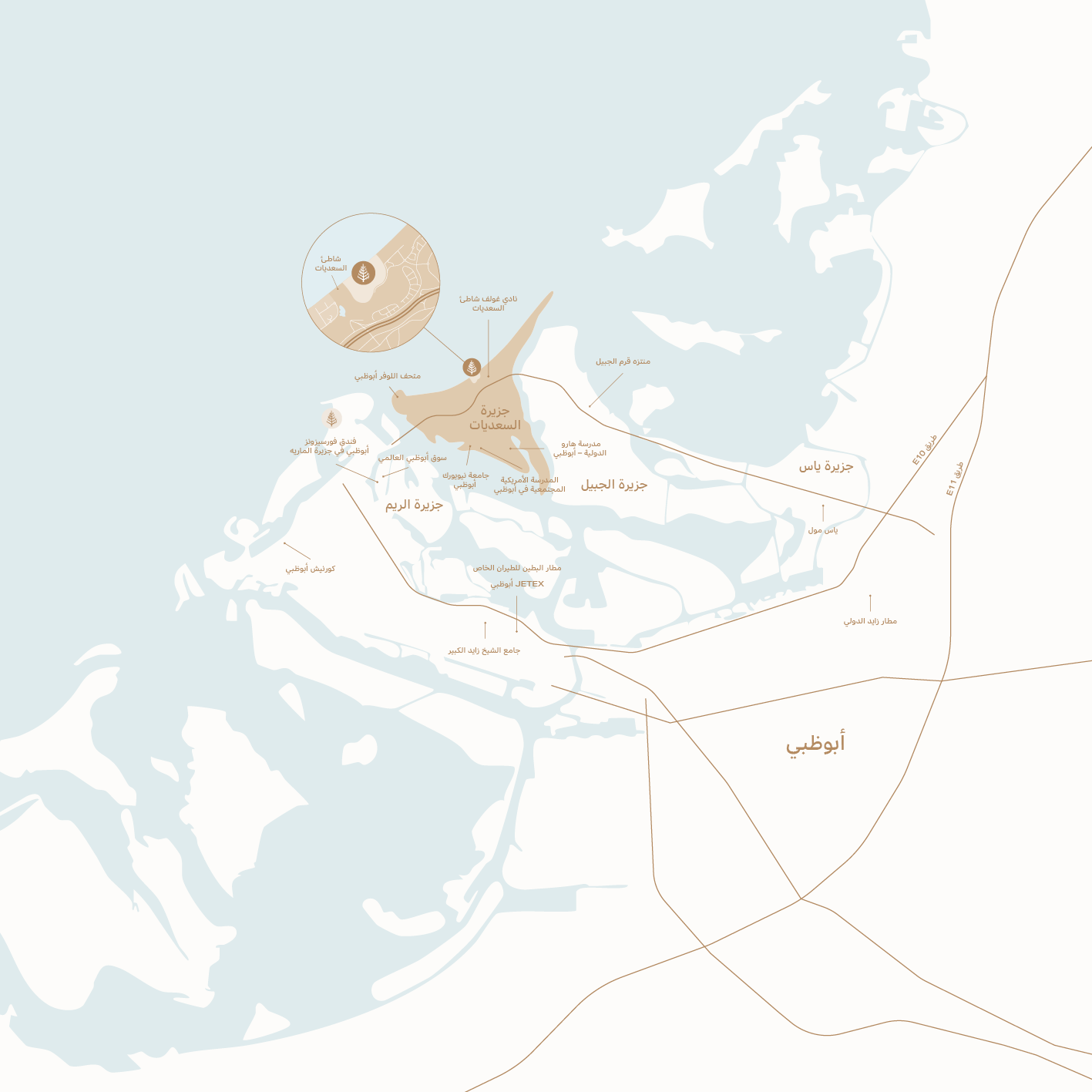 على بعد أقل من كيلومتر من المدينة، يروي الحي الثقافي في الجزيرة قصة إرث الإمارات والعالم، والروابط التي شكلتها. هنا، تنتظرك تجارب فريدة عند كل منعطف، في فضاء ثقافي راقٍ يحتفي بفنون العالم وموسيقاه وعلومه.