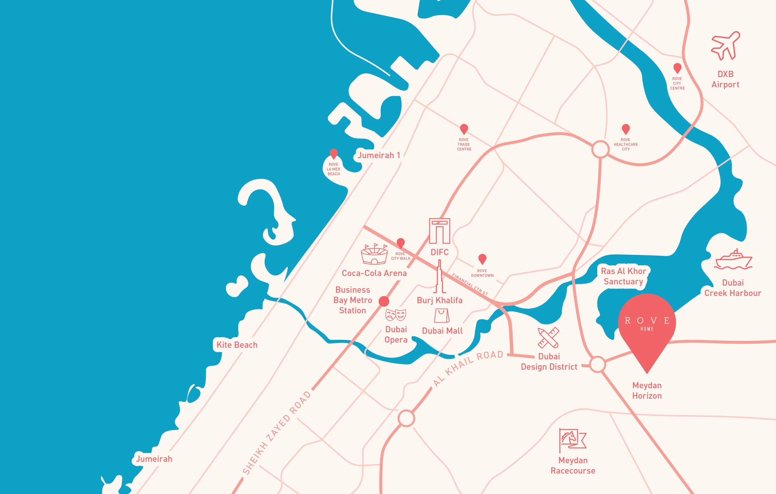 At Rove Home Meydan Horizon, you’re set in one of Dubai’s most connected new neighbourhoods, just minutes from the city’s biggest highlights. Step outside and feel the city’s pulse, then come home to a community designed for ease. Prime spots, chosen with care, so you’re always right where you need to be.